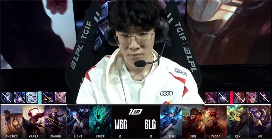 这一把WBG三线全都是长手打短手,BLG众人只能在塔下补兵。盲僧刷到3级gank中路,塞拉斯先手E二段精准地拉到杰斯,Xun的盲僧于小兵丛中Q中杰斯拿到一血。