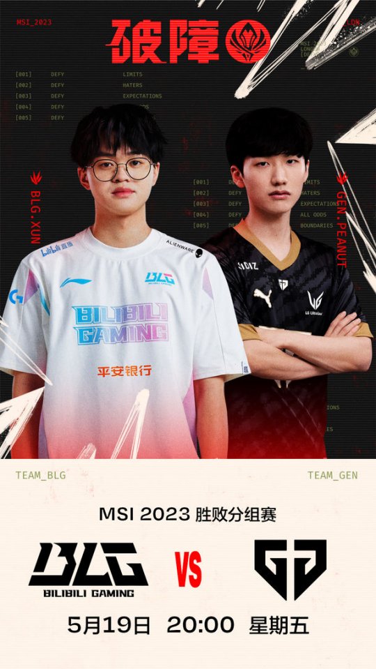 英雄联盟赛事发布今日MSI胜败分组赛预告。BLG vs GEN(BO5),输家淘汰。