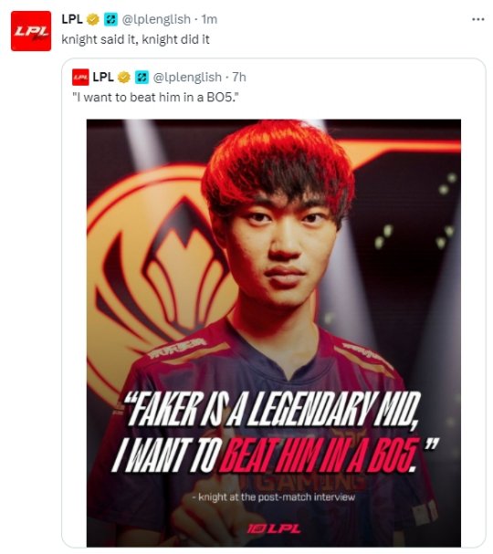 LPL赛事官推更新:knight说到做到!
