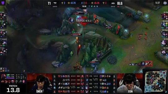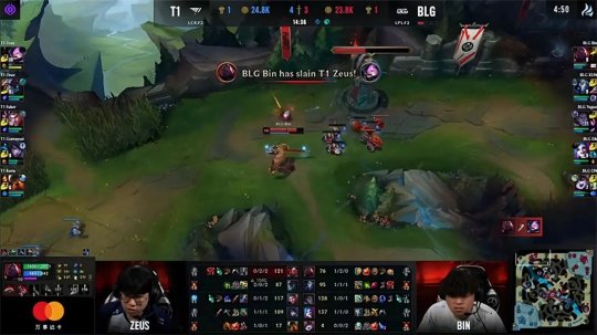 T1状态巅峰展开推进连破三路高地,BLG殊死抵抗但奈何Buff差距太大始终无法找到机会,T1一击结束比赛扳回一城,避免了被3-0淘汰的结果!BLG仍然手握赛点,双方进入第四局。