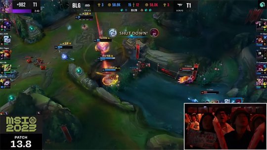 远古巨龙刷新之前BLG想要趁着大龙Buff的最后时间推掉中路高地,但T1趁着BLG人员分散再次突然发难秒掉了泽丽与泰坦,直扑龙坑拿下了远古巨龙,螳螂这一次没能抢龙成功遭到击杀,但剑姬冷静分推拆掉下路高地做出了止损。眼看着形势愈发紧张,Gumayusi不慎打翻水杯导致比赛暂停,BLG稳住心态调整了战术,拖到T1远古龙魂结束以后在野区发难抓死了洛拿到了第二条大龙,重新获得推进权。蚕食掉中路高地以后BLG再将复活的下路水晶推掉,双方汇聚下路河道争夺远古龙魂展开决战,BLG非常冷静地等到三路兵线压迫高地,终于找到了T1的漏洞打出0换5团灭,恭喜BLG以3-1击败了LCK二号种子T1战队,与JDG战队会师2023MSI季中冠军赛总决赛!