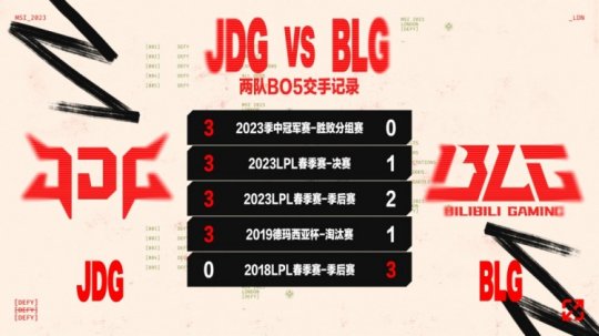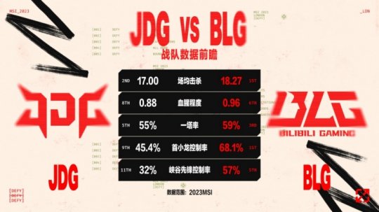 2023MSI决赛JDG对阵BLG的比赛将于今日19点开赛,英雄联盟赛事官博发布两队的数据前瞻。
