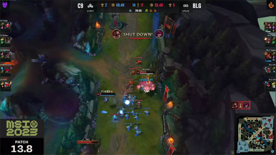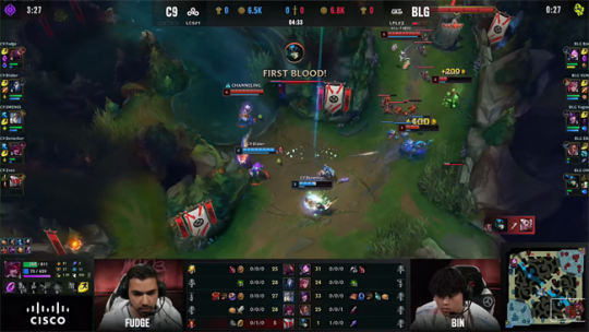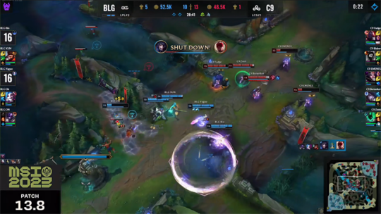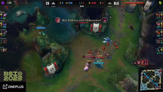 2023 MSI季中冠军赛胜败分组赛第三日,LPL二号种子BLG战队对阵LCS冠军C9战队。在之前的入围赛里,BLG虽然在BO3第二盘被GG逆风翻盘拿下一分,但整体前期节奏牢牢保持着压制。面对更加强大的C9战队,BLG势必要带来更好的表现才能不落下风。面对LCS冠军的冲击,BLG凭借边路选手以及XUN的出色发挥加上深厚的运营功底让C9即使在前期占据主动也无法滚起雪球,最终后期团战里BLG操作配合完全碾压对手,以3-0的比分击败了C9晋级胜者组。