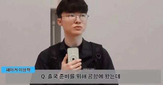 韩媒fomos发布T1.Faker选手于韩国仁川国际机场出发前往英国伦敦参加MSI的视频采访,原视频翻译如下