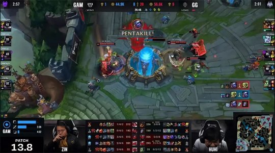 GG看到GAM三人出现在上路,灵性地放出第二只先锋通关了下路。大龙出生前妖姬单吃了上路一塔,GG兵不血刃“听牌”了炼金龙魂,经济领先5千。中期剑姬单带下路时动了杀心,不料鳄鱼直接摇来队友反杀了剑姬,GAM的单带优势也荡然无存。Gori的妖姬做出两件套,无视GAM中路二塔秒掉泽丽,减员的GAM无奈将二塔加龙魂拱手让出。23分钟GG抱团rush掉大龙,一路追击打出2换4,双方经济差来到1万。最终Stixxay的小炮在GAM主水晶前砍下本届MSI的第一个五杀,带领GG团灭GAM一波结束比赛,势如破竹2-0轻取GAM,同BLG会师胜者组!