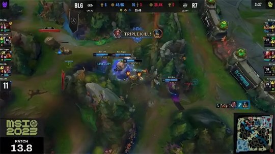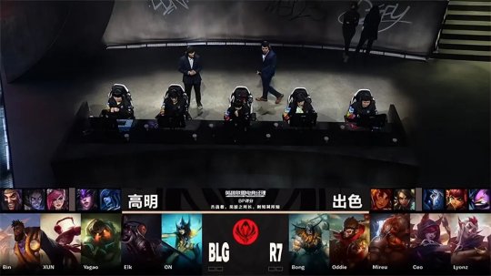 回城休整以后BLG从中路势不可挡杀入高地,凭借超过一万五的巨大经济领先开团碾压击溃了R7,在泉水门口彻底团灭对手以后一波结束了比赛,恭喜BLG优势巨大收获1-0领先。