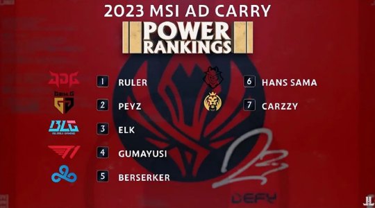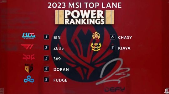 2023MSI季中冠军赛将于北京时间5月2日在英国伦敦火热开战!近日外媒League On Lock评选出本届MSI各位置的选手TOP 7,BLG上单Bin、GEN中单Chovy、JDG下路Ruler和T1野辅Oner、Keria为五个位置的头名。