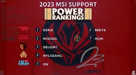 T1.Keria、JDG.MissING、GEN.Delight、MAD.Hylissang、BLG.ON、G2.Mikyx、GG.Huhi