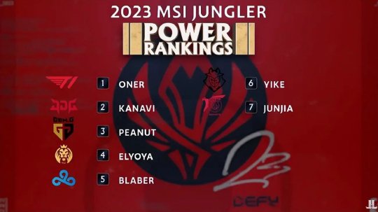 T1.Oner、JDG.Kanavi、GEN.Peanut、MAD.Elyoya、C9.Blaber、G2.Yike、PSG.Junjia