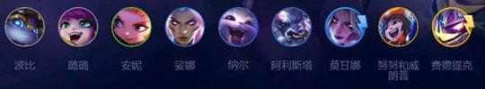 8人口:露露+波比+安妮+纳尔+牛头+琴女(带天才转)+莫甘娜+任意橙卡/控制卡。