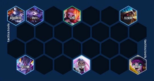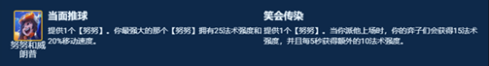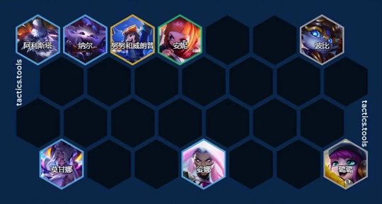 阵容羁绊合理,有物理伤害(主C纳尔),有魔法伤害(副C娑娜、努努),有无天才转都可以玩,没有天才转吃阵容熟练度,有天才转在常规运营下前三,无天才转第三左右。