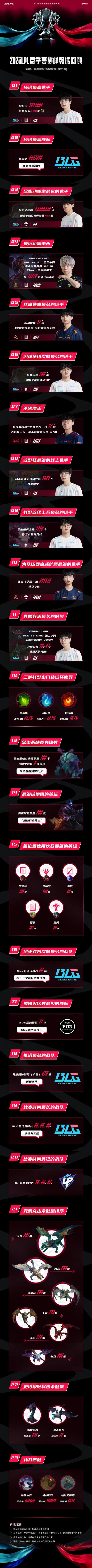 今日英雄联盟赛事官博更新,发布2023LPL春季赛巅峰数据回顾,ON总跑动距离最远,贾克斯被Ban最多,详细数据如下: