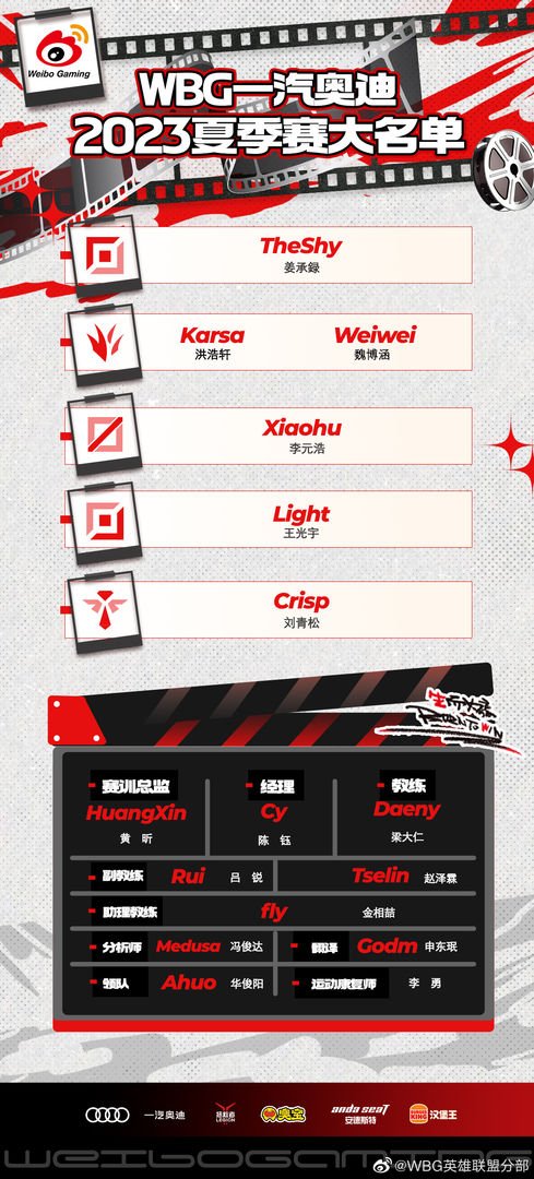 WBG俱乐部公布了LPL夏季赛的阵容大名单,与春季赛相比更换了主教练,并增加了打野Weiwei轮换,具体内容如下: