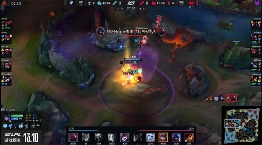 北京时间6月6日,LPL夏季赛第二周迎来第二日赛程,第一场比赛由WE坐镇西安主场,迎战两连胜的UP!WE打野Heng在两局比赛的前期都入侵UP野区,两次打出Ning的闪现稳占上风,同时WE三路也很稳健,步步为营2-0终结UP两连胜!