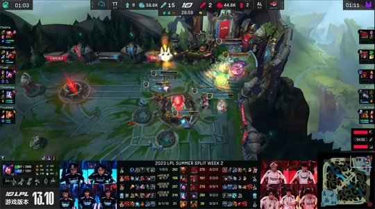 2023LPL夏季赛常规赛第二周首日第二场比赛,TT战队对阵AL战队,开局两连败的AL战队在今天首局落败以后状态终于回升,连续两局通过前中期积极的节奏进攻击溃了TT掌握了比赛的走向,最终2-1力克TT拿到夏季赛首胜。