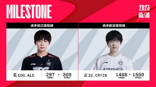 EDG.Ale当前出场数297,距离300场成就仅差3场。