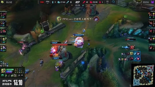 23分钟左右FPX带着大龙Buff推进下路,击溃了TT的防线以后以在混战中强拆基地结束了比赛,恭喜FPX 2-0击败TT解锁赛季首胜!