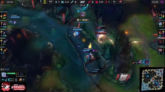 随着双方英雄等级的提升和装备的成长,AL中、下两路手握线权,猴子得以控下土龙,作为交换大树拿到峡谷先锋。AL还想扩大在下半野区的统治力,大举入侵NIP蓝buff野区,赛恩走到下路河道参战,大树和蕾欧娜互换阵亡,猴子如愿将NIP的野怪资源洗劫一空。大树复活之后放出先锋,让杰斯单吃了AL下路一血塔进行止损,后续小龙团战AL中野的沟通出现了失误,猴子本想用假身吸收一波技能,妮蔻直接开大进场,NIP付出纳尔一人的代价击杀了AL中辅两人,接连控下水龙加二先锋完全不亏。大龙出生前纳尔单吃了AL上路一塔,然后去中路和队友集结,NIP放出先锋推掉AL中路一塔,大纳尔从侧翼进场拍回三人,和金克丝互换倒地。NIP三路一塔均屹立不倒,经济领先4千。