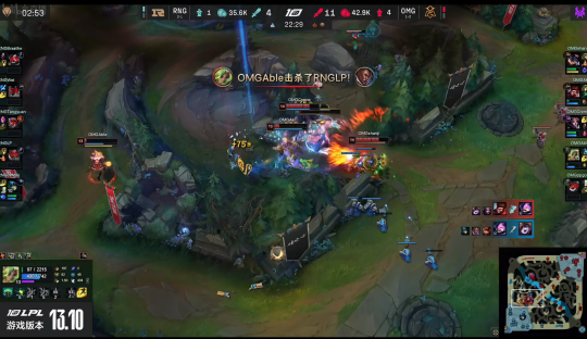 结束对线期,OMG开始发力,在野区资源上RNG正面根本不敌,OMG的兰博给到的压力实在太大。