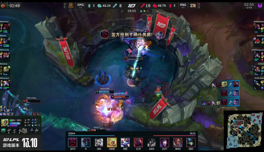 RNG此时掌握巨大优势,RNG的中野以及下路遇人就上,OMG众人根本无法阻挡。在RNG龙魂团上,RNG通过不断的拉扯消耗,泽丽开大进场直接控制到OMG三个人,泽丽在露露的加持buff下,疯狂的输出,RNG直接团灭OMG拿到龙魂和大龙。