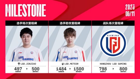 LGD.Jinjiao当前出场数497,距离500场成就仅差3场。