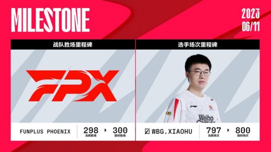 LPL夏季赛正在进行,今日赛前官方放出了数据里程碑,Xiaohu距800场成就仅差3场,FPX距300胜成就仅差2胜。
