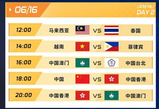 随后中国队也将在6月16日下午6点与6月17日下午6点,分别对阵中国香港与中国台北。