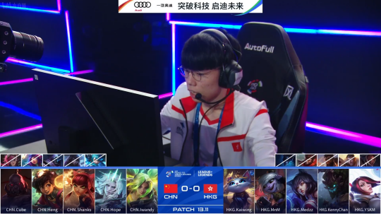 比赛时间8分钟,中国代表队茂凯来到中路支援,拿到中国香港代表队安妮的比分,随后来到9分钟中国代表队下路两个人对位表现十分神勇,拿到了中国香港代表队李青与厄斐琉斯的两个比分。