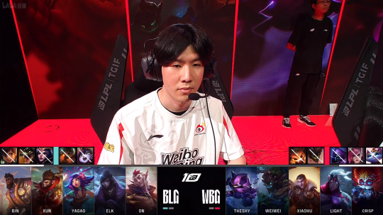 比赛开局WBG的波比下路越塔Gank将BLG洛击杀拿下一血,随后BLG霞在塔下也将波比杀掉。波比一直在下路挂着,想要帮助厄斐琉斯,但拿了一血之后就再无机会,反而耽误了自己的发育补刀非常的横扫。