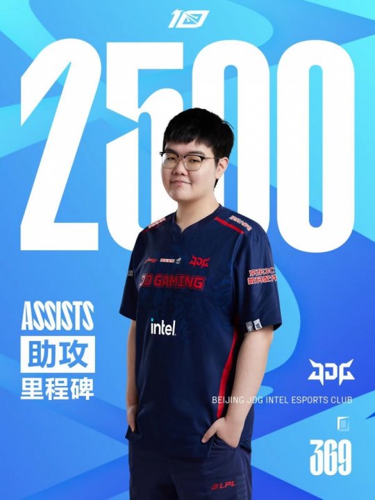 JDG对阵NIP的比赛中,369使用奥恩达成了在LPL的第2500助攻,是上路位第2位达成该成就的选手,恭喜369!