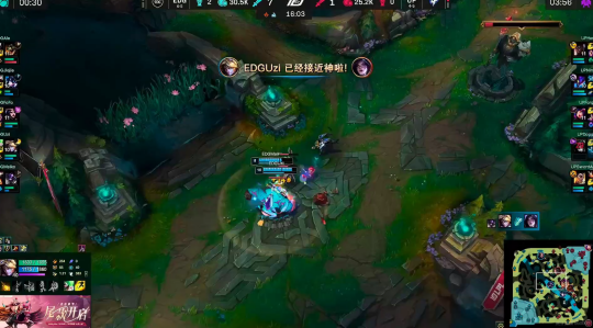 比赛前期完全就是EDG的节奏,EDG的下路EZ和牛头在对现阶段就打爆了UP的下路,在15分钟EDG的下路EZ就拿到7-0的超神战绩,野区资源上EDG猪妹也非常的给力,控下了三条小龙。