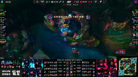 UP前期落后巨大,中期并没有把局势搬回,最终EDG以巨大的优势战胜UP,拿下比赛胜利。