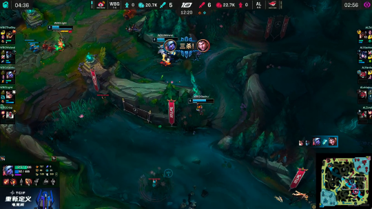 比赛28分钟两队河道开团,WBG的小炮火箭跳跃斩获三杀,AL四个人阵亡,WBG从下路推进一波结束比赛。