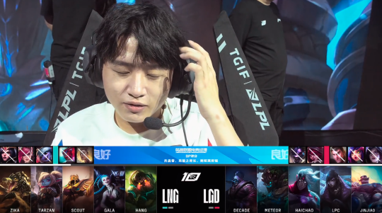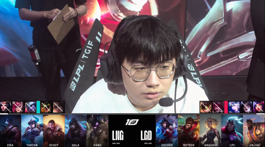 LGD的打野猴子在开局直接“军训”Zika贾克斯,连续两次将Zika贾克斯抓死。不仅是帮助上路,猴子还帮助中路抓死杰斯。LGD下路韦鲁斯在LNG打野Gank的情况下还换掉了牛头。