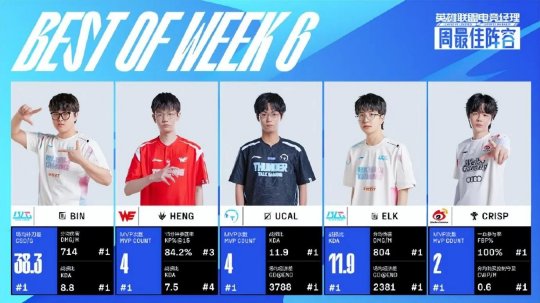 北京时间7月10日,英雄联盟赛事公布LPL夏季赛常规赛第六周最佳阵容。