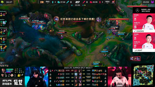 31分钟第二条大龙,两队团战Light卡莎三杀,WBG团灭RNG直接中路一波赢下比赛胜利。