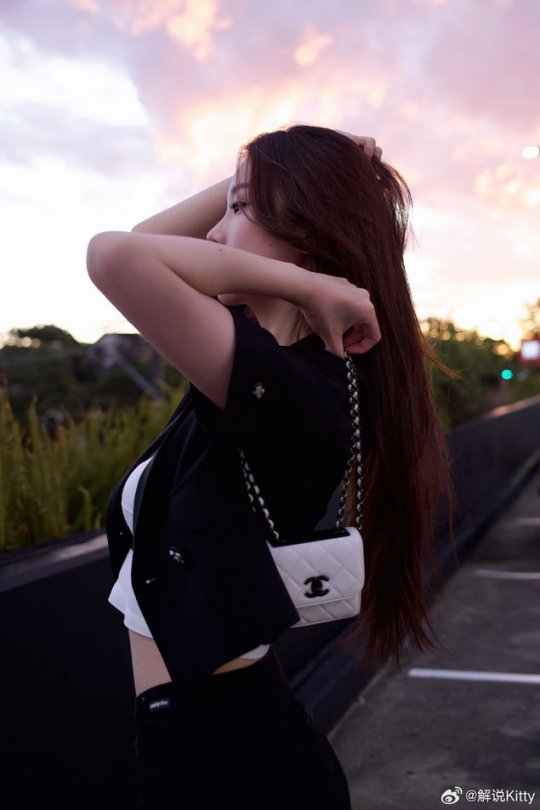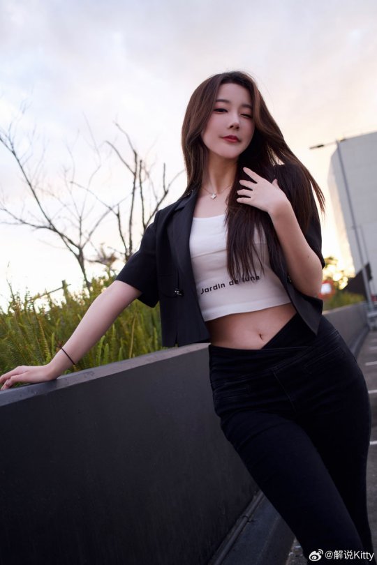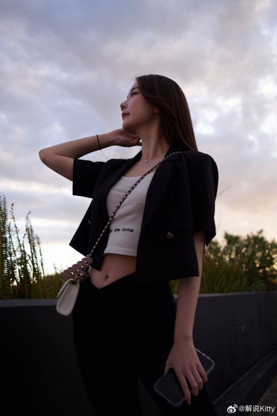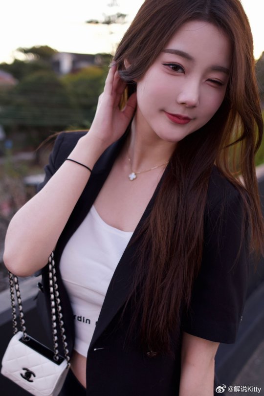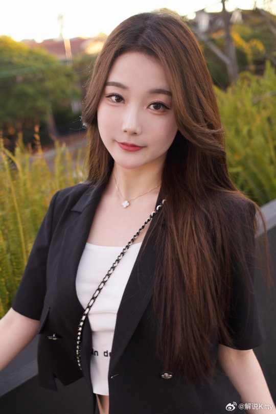 解说Kitty晒照 这身黑色小西装帅不帅