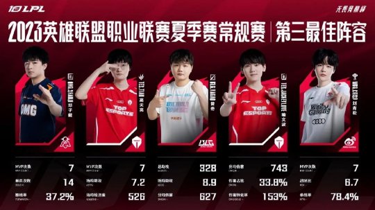 北京时间7月21日,英雄联盟赛事官方正式公布2023LPL夏季赛常规赛MVP、最佳新秀、最佳阵容公布.