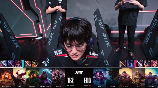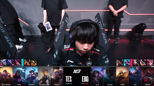 Ale实在是太团队了,在12分钟赛恩来到下路野区帮助UZI卡莎拿到TES猪妹大人头。17分钟EDG的蝎子在中路闪现R将TES杰斯拉回来给卡莎吃到一个大人头。