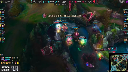 10分钟下路,Ale波比在下路抓到卡莎配合队友的伤害将其击杀,EDG拿下本场第一条小龙。15分钟上路河道团战TES打出1换4大获全胜拿下二先锋。20分钟在中路,EDG抓到失误的TES奥恩并将其击杀。