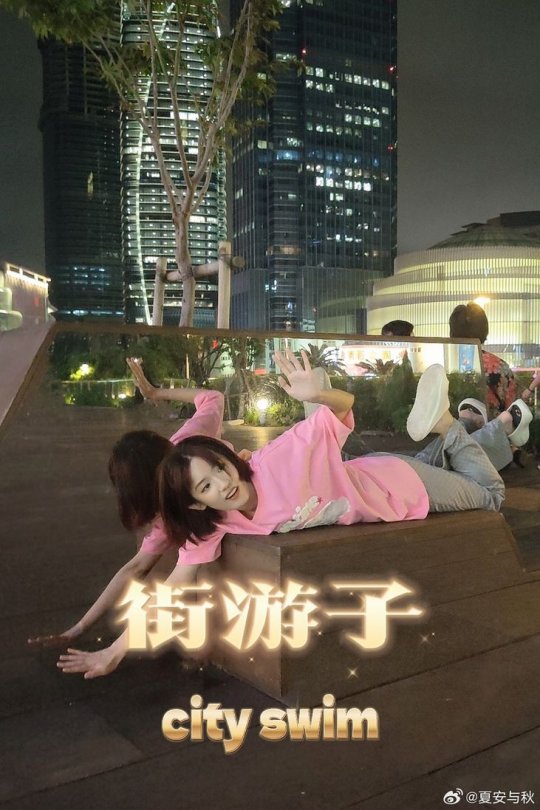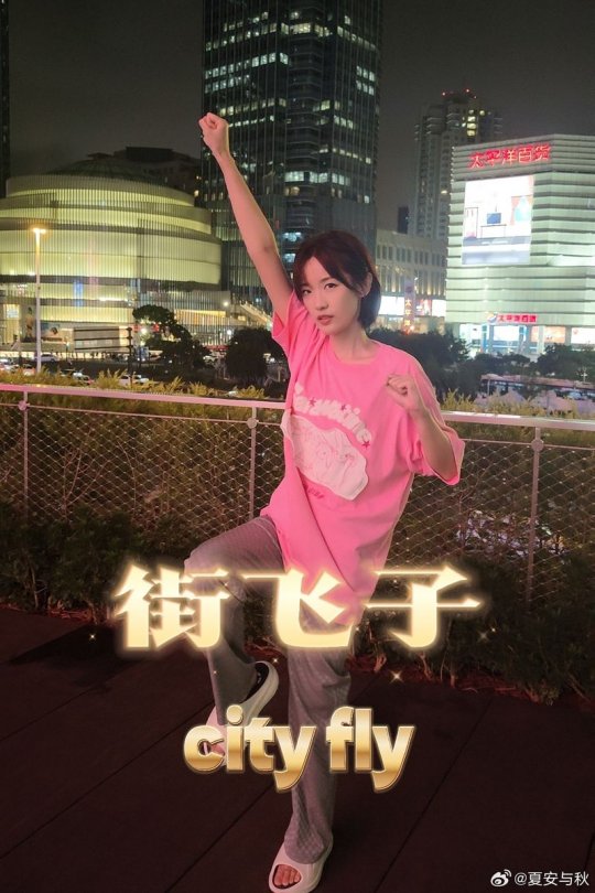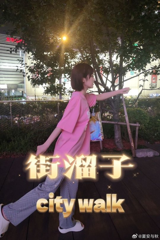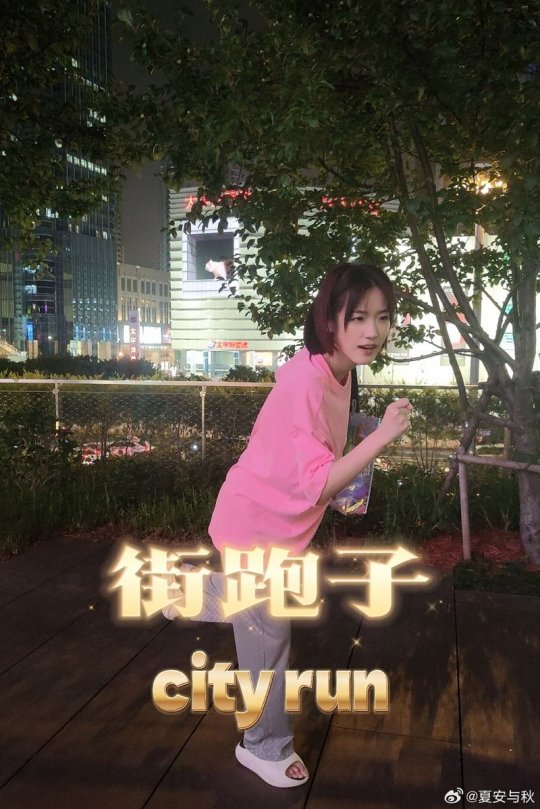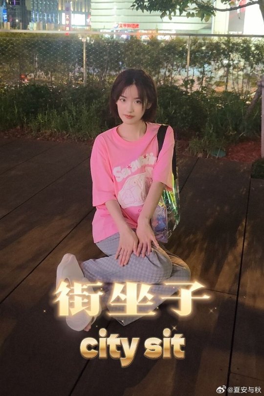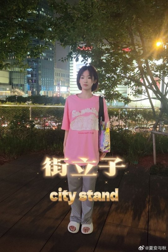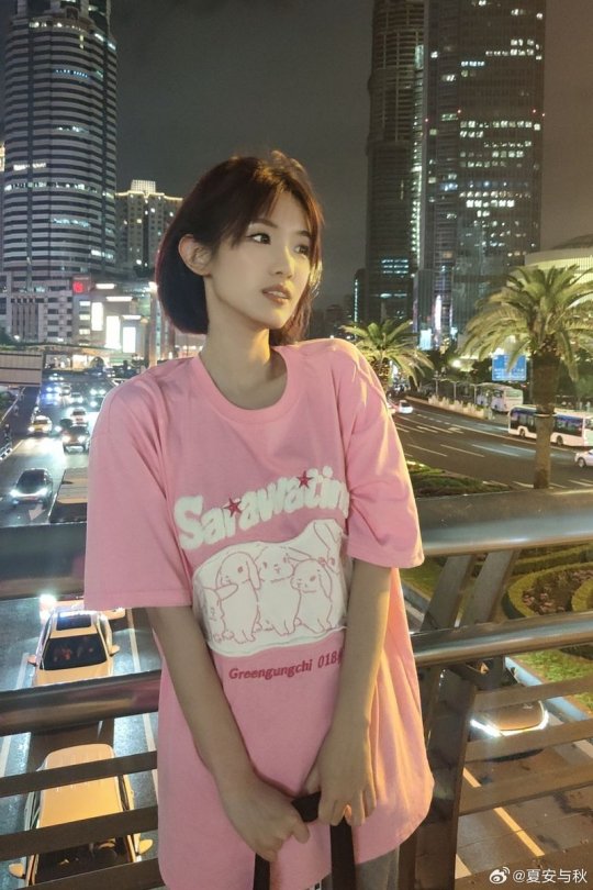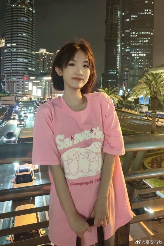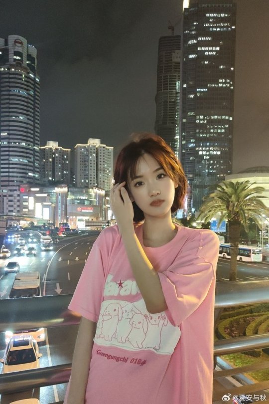 主持夏安晒照 身着粉色T恤的短发甜妹