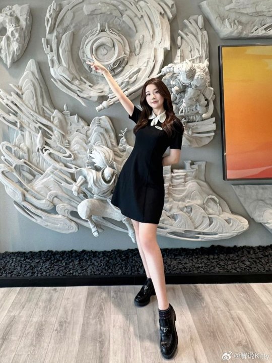 英文解说Kitty晒照 熟悉的黑色短裙