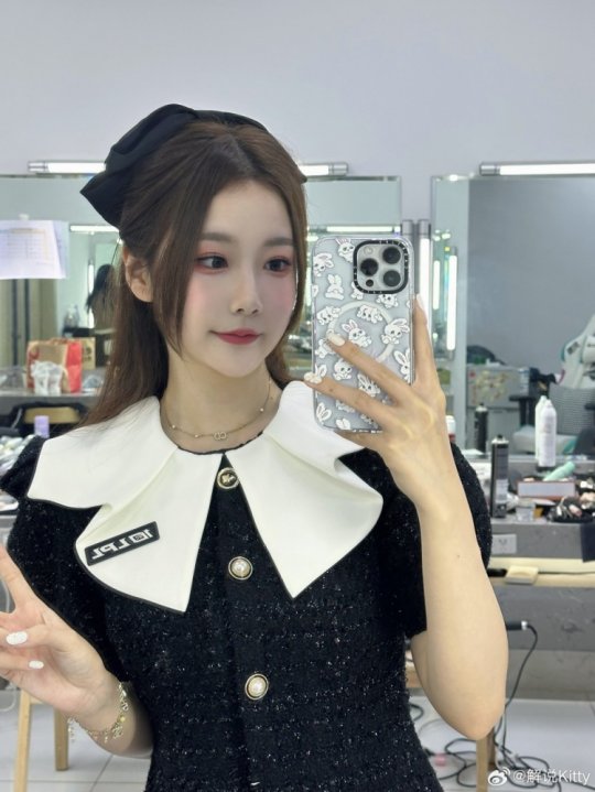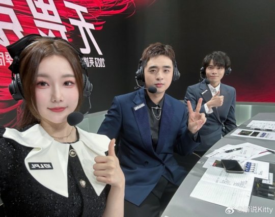 今日解说Kitty分享三张照片,并配文:纪念一下,第一次LPL中文流线下解说~