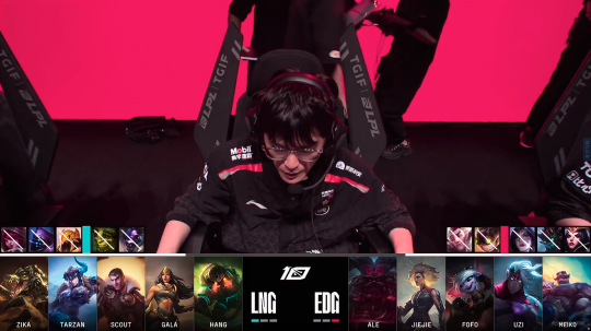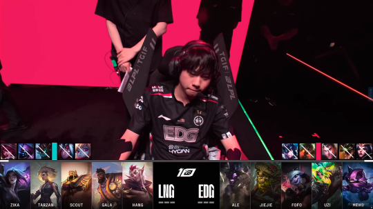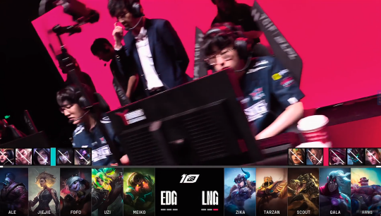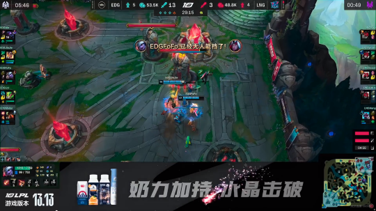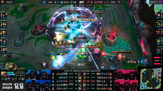 比赛20分钟LNG拿下第三条小龙,EDG五人猜到Scout沙皇位置将其击杀,EDG五人中路开团,但是LNG霞的伤害实在是太高了,直接在EDG脸上输出将EDG下路两人击杀。