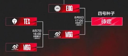 WBG与EG的比赛将在8月8日的下午17:00,在决出四号种子之后,将会进行出征仪式!