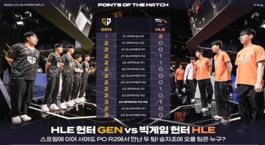 LCK夏季赛季后赛Gen,G成功击败HLE,这也是他们自2022年春季赛常规赛第二轮比赛以来第十三次击败HLE。上一次HLE战胜Gen.G还要追溯到2021年春季赛常规赛首轮的比赛。