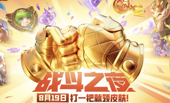 如果想要快速拿到黄金宝箱,但是又没有时间去积攒活动任务积分的召唤师,也可以在8月19日当天开启加速模式。召唤师们只要在那一天完成任意3场游戏对局,就能体验一日直升战斗之夜黄金宝箱的快乐,还有神话精粹相送!