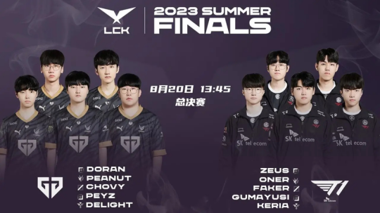 2023LCK夏季赛决赛,GEN对阵T1的比赛将于今日13:45开赛,两队的首发名单如下: